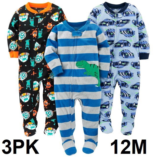 3PK Simple Joys by Carter's baby-boys Footed Fleece Pajamas - 12M - MULTICOLOR