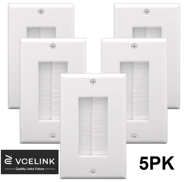 5PK VCE Single Brush Wall Plate Pass Through Insert for Wires - WHITE (MODEL: A176)