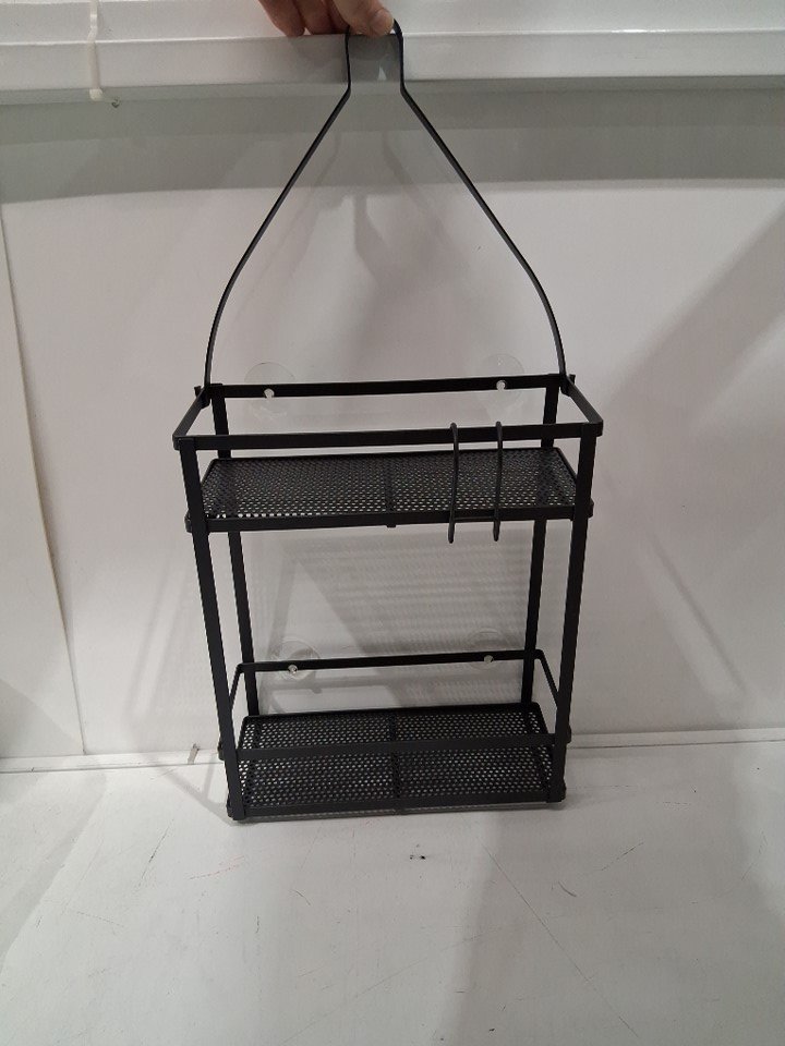 metal shower caddy with hook and suction cups - 10.5" x 12.5" x 5.5" - black