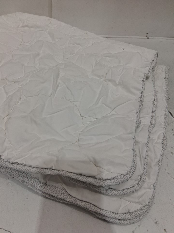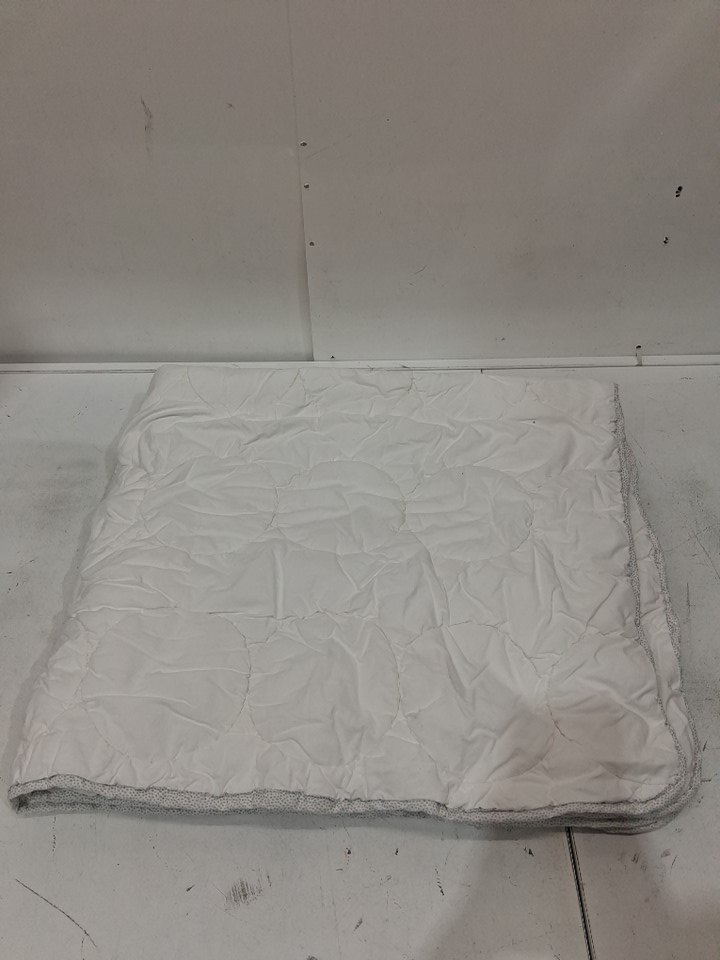 TODDLER lightweight bed quilt with round stitching and polka dot border - 38" x 44" - white / grey
