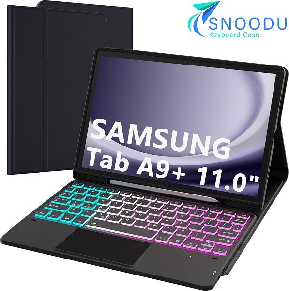 snoodu tablet backlit detachable touchpad keyboard and case - for samsung galaxy tab a9+ - 11" - black