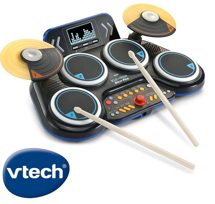 vtech kidi star drum pad - 20 drum styles- bluetooth connection - headphone connection - ages 5+ - black (model: 80-572600)