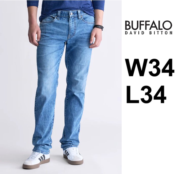 men's buffalo david bitton straight six denim jeans - w34 x l34 - contrast and whisker blue (style: BM26028)