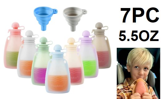 7pc pandaear reusable silicone squeeze food pouches with funnels - 5.5oz - multi color