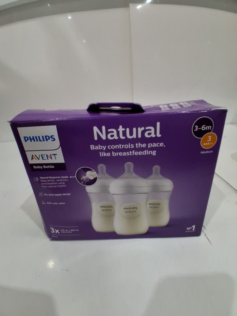 3PK PHILIPS Avent Natural Baby Bottles with Natural Response Nipples - Medium Flow - Flow 3 - 9OZ - CLEAR (MODEL: scy903/03)