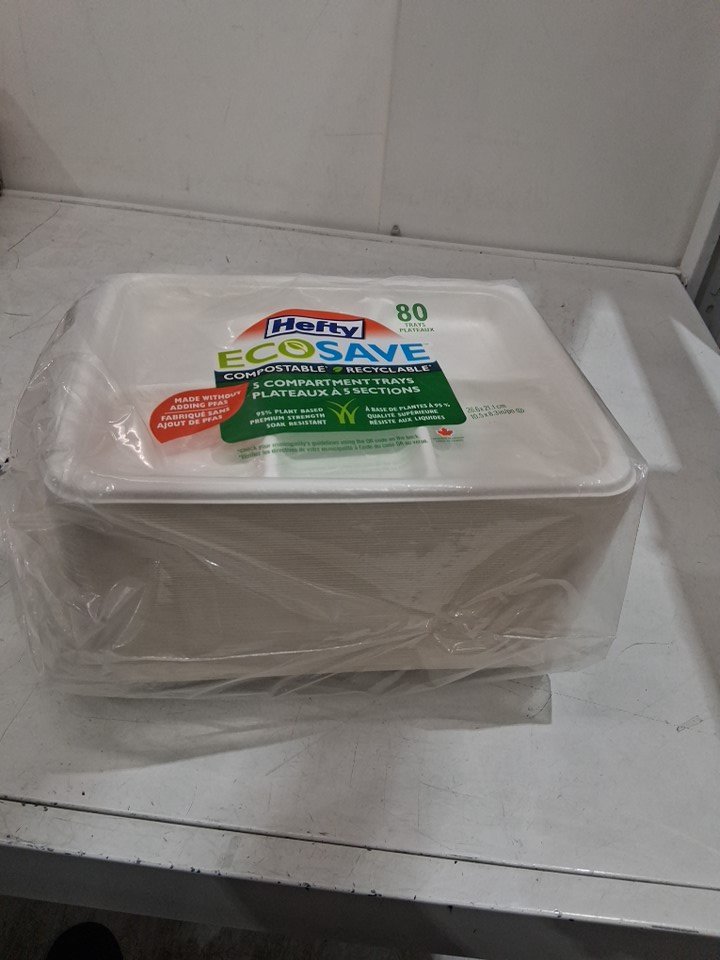 80PK Hefty Ecosave 100% compostable 5 compartment paper trays - 10.5" x 8.3"