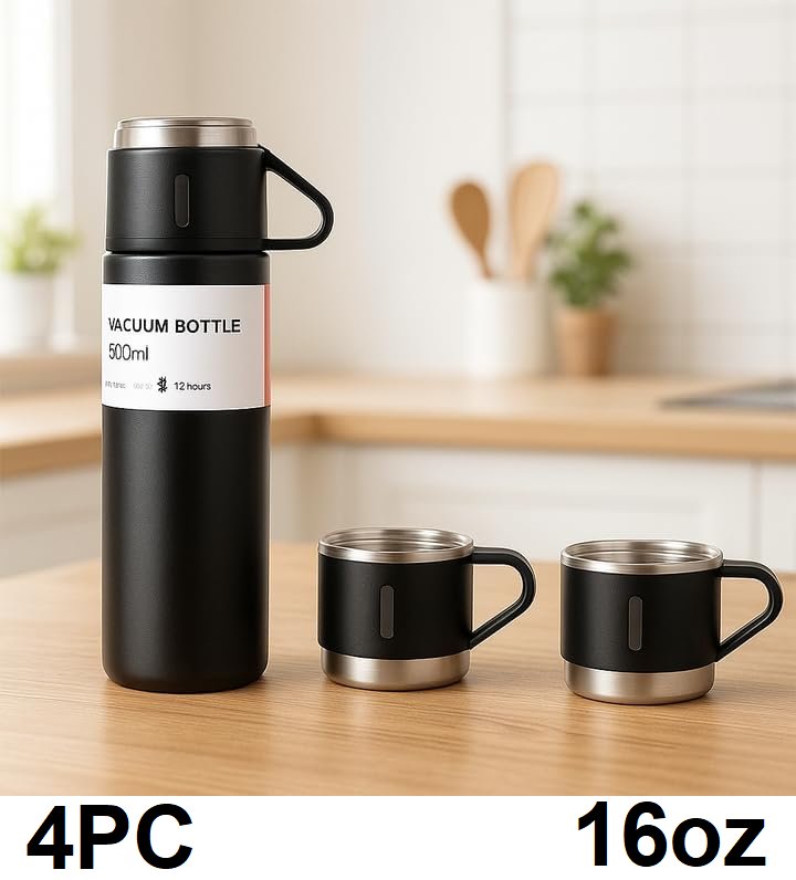 4pc Drinqly Stainless Steel Insulated Coffee Thermal Mug Vacuum Flask - 16oz - black