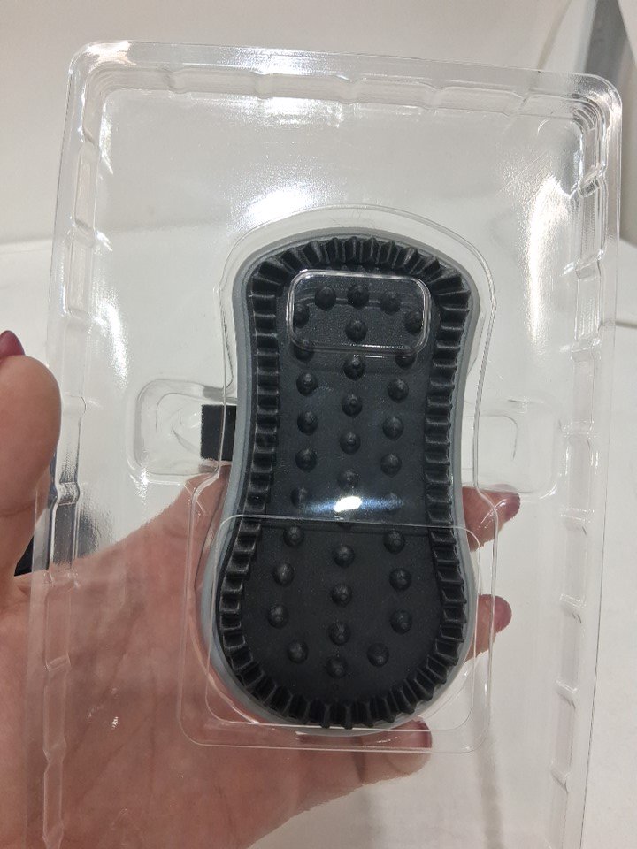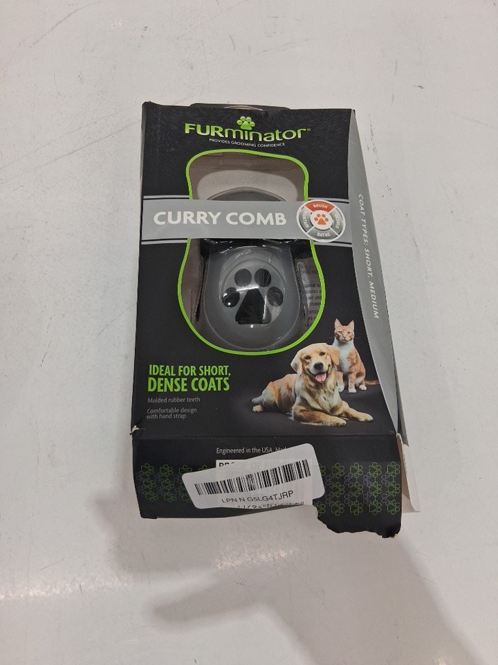 pet FURMINATOR CURRY COMB WITH MOLDED RUBBER TEETH & HAND STRAP - FOR SHORT, DENSE COATS - GREY