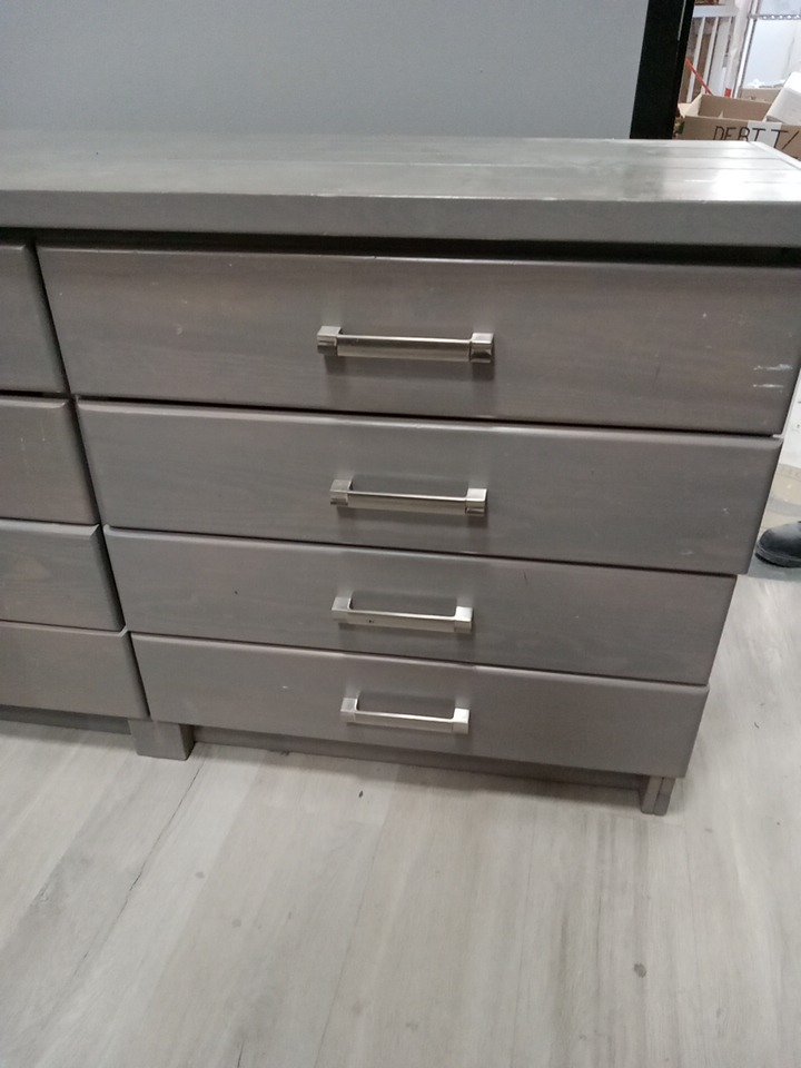 dresser has multiple stains, scuffs and dings from previous use. see images.