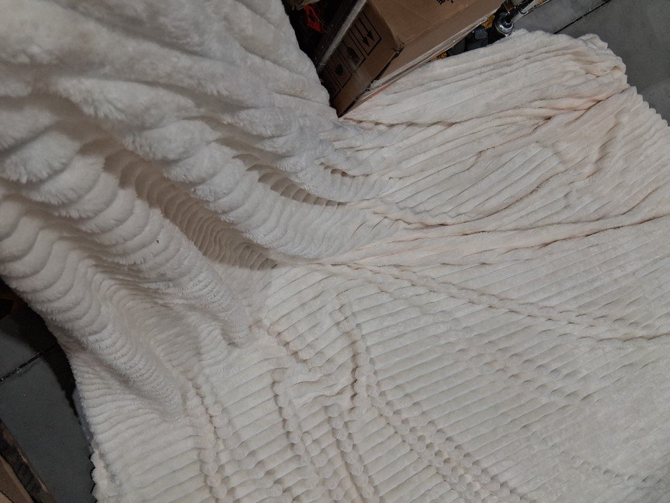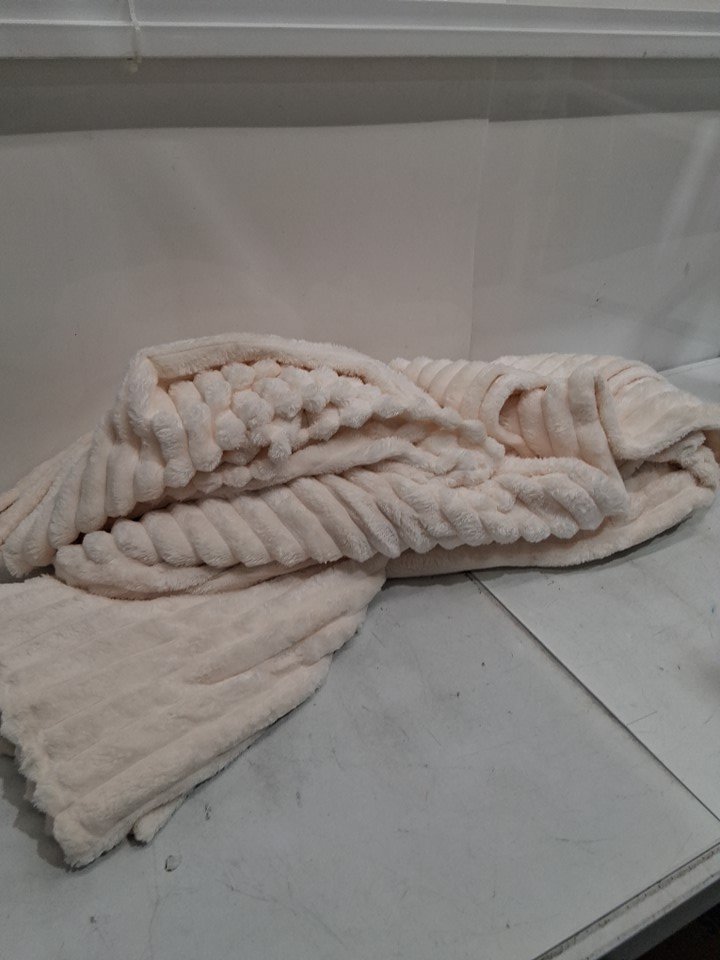 BEDELITE Plush Ribbed Fleece Blanket - 108" x 90" King Size - Cream/Soft Microfiber