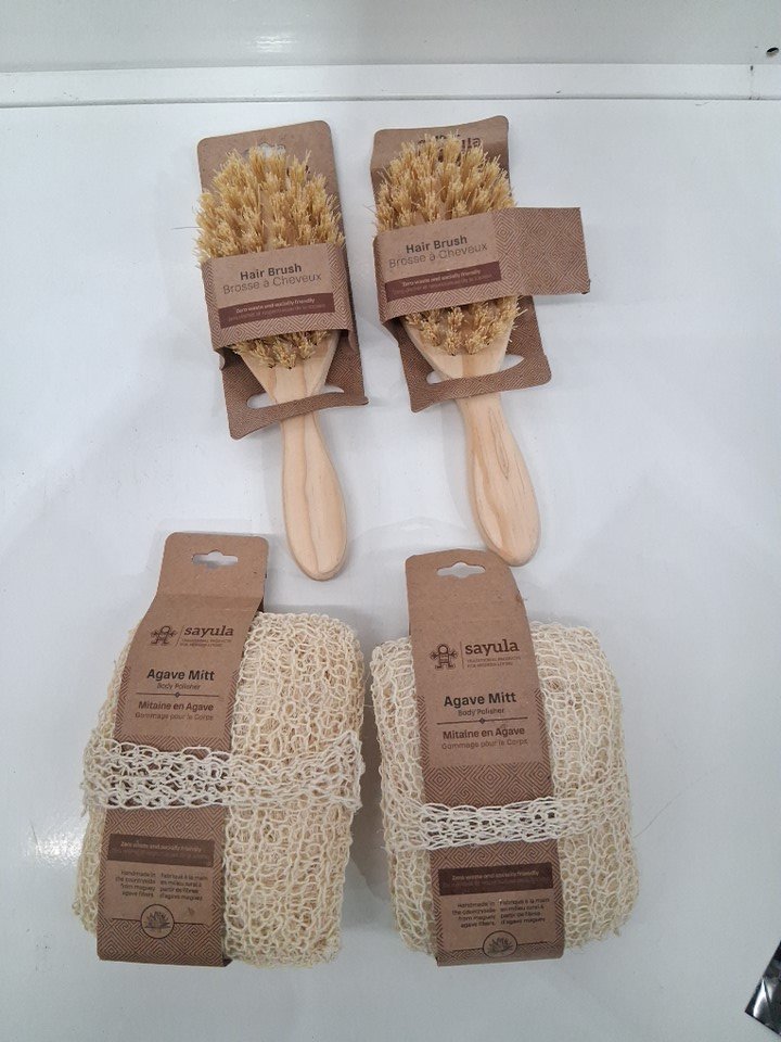 4pc sayula traditional modern living body brush and scrub hygiene set - made from lechuguilla agave fibers