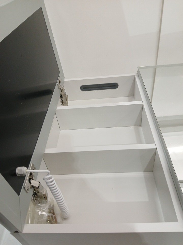 when item is shifted around the lights turn on and off indicating a faulty wiring system. Otherwise cabinet and mirror are in good new condition. additional hardware may be needed for assembly.