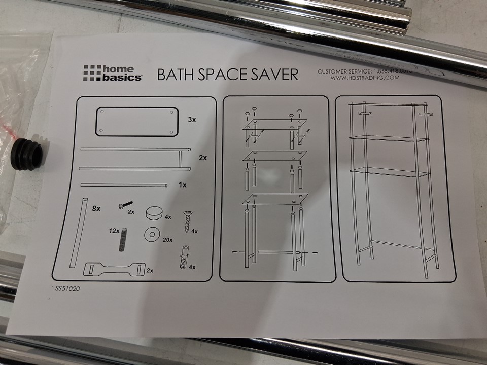 Bathroom Space Saver with 3 Glass Shelves - 58" x 25" - chrome (model: ss51020)