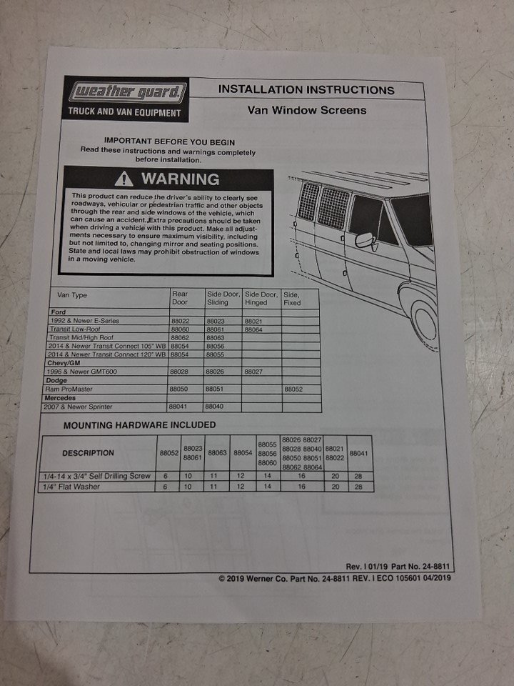 2PK WEATHER GUARD PROTECTIVE VAN WINDOW SCREENS - BLACK