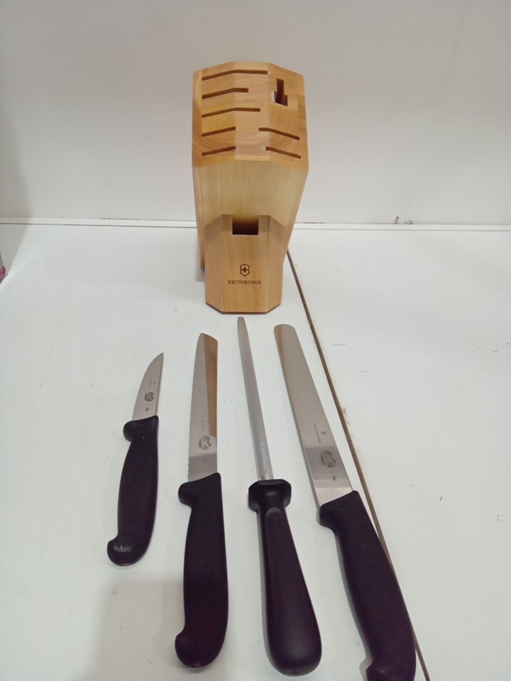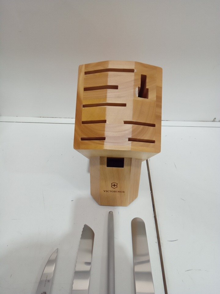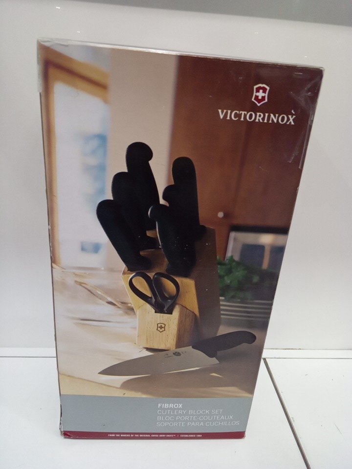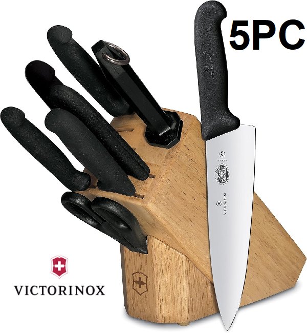 5pn victorinox fibrox cutlery block set - wood/black - (model: rhf05078-8-piece)