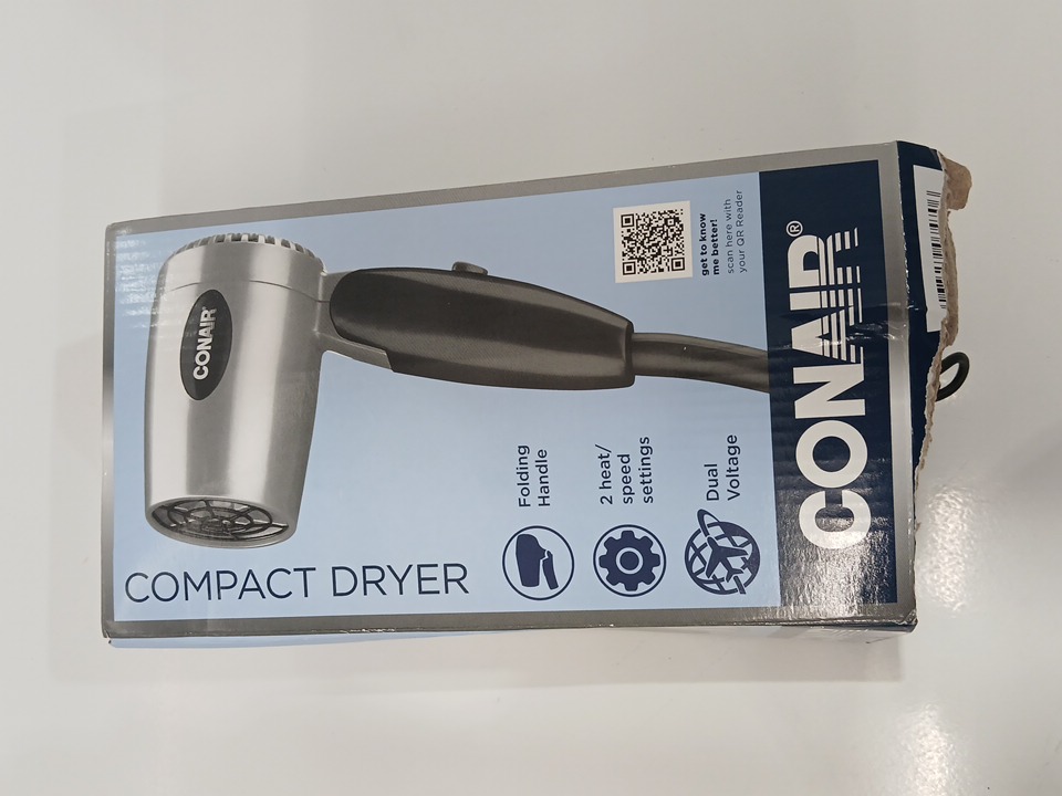 Conair compact travel hair blow dryer with folding handle - 1600W - Grey (model: 124NPC)