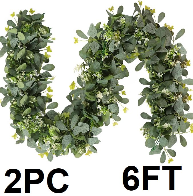 2pc SOMYTING Artificial Eucalyptus Garland Fake Vines for decor - 6ft/each - green