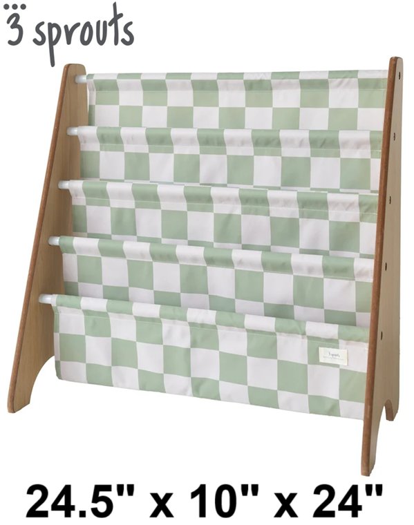 3 sprouts 4-tier recycled fabric book rack - 24.5" x 10" x 24" - Green/White (model: IRKCHG)