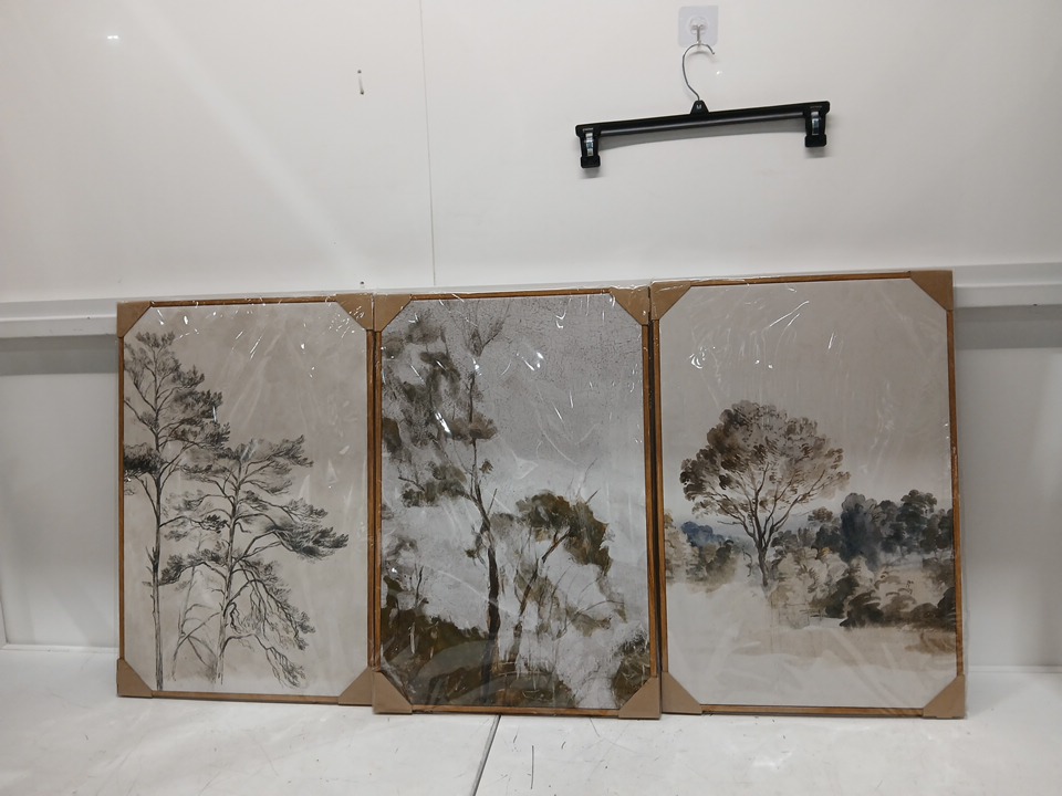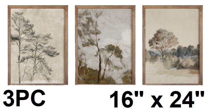 3pc Vintage Muted Landscape Print Set - 16" x 24" - brown/grey