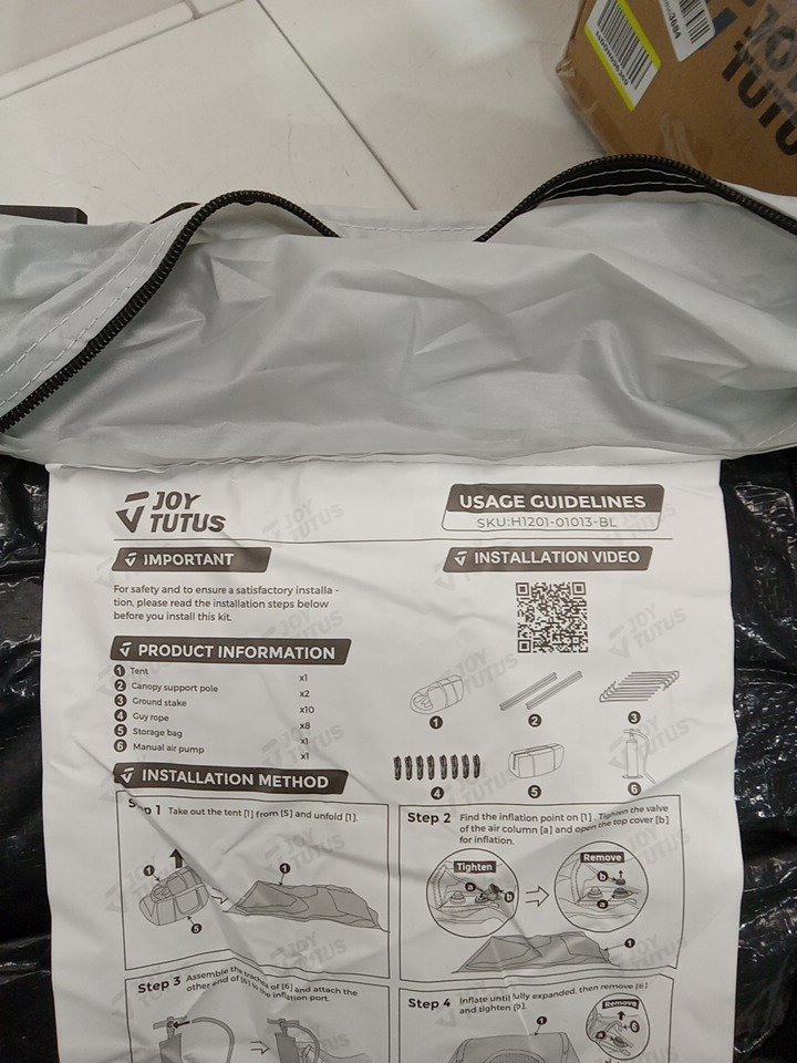 JOYTUTUS Inflatable waterproof Truck Bed Tent with Awning, Includes Air Pump - 5.5FT-6FT beds - blue/white (model: ‎H1201-01013-BL)