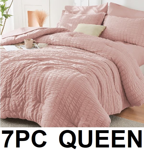 7pc HYMOKEGE Seersucker Bed in a Bag - queen - rose gold
