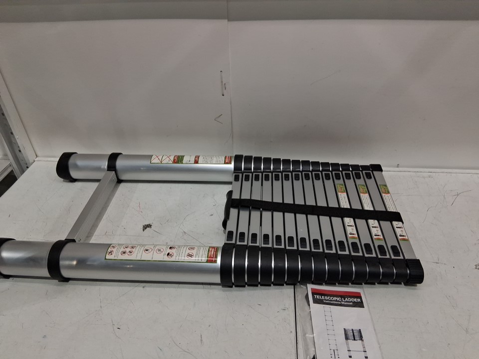 HOSTIC Telescoping Ladder Heavy Duty Aluminum Extendable Ladder Collapsible Locking Mechanism for Attic Household Use Outdoor Work - 20.34ft - 330lbs max - grey / black