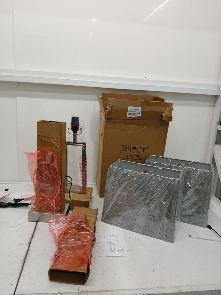 2pk rinweey modern touch control bedside table lamps with fabric shades, usb ports and ac outlets, 24" tall - GREY/SILVER(model: td-rw-307)
