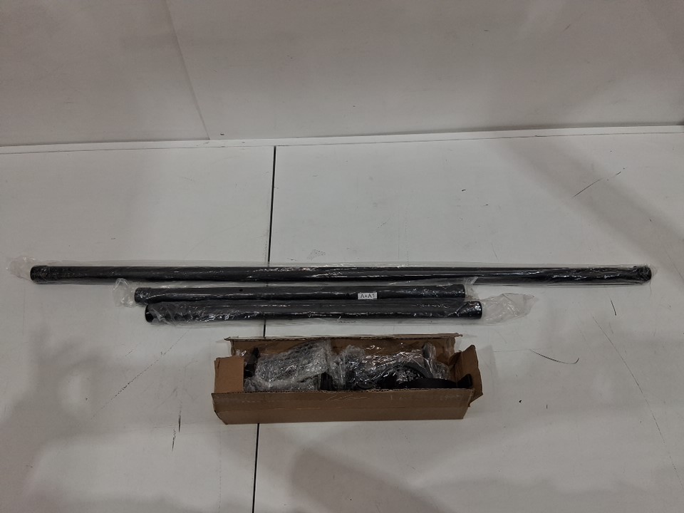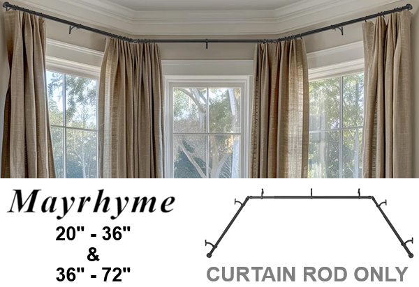 MAYRHYME ADJUSTABLE Bay Window Curtain Rods with Aluminum End Cap Finials and Brackets - SIDES 20" - 36" & CENTER 36" - 72" - MATTE BLACK