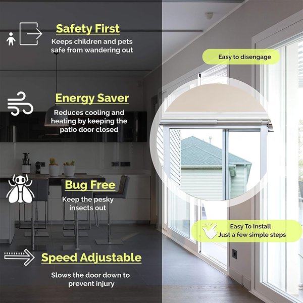 MIGERLO Pneumatic Adjustable Self Sliding Door Closer for Door - 29.5" - 51" - SILVER/WHITE