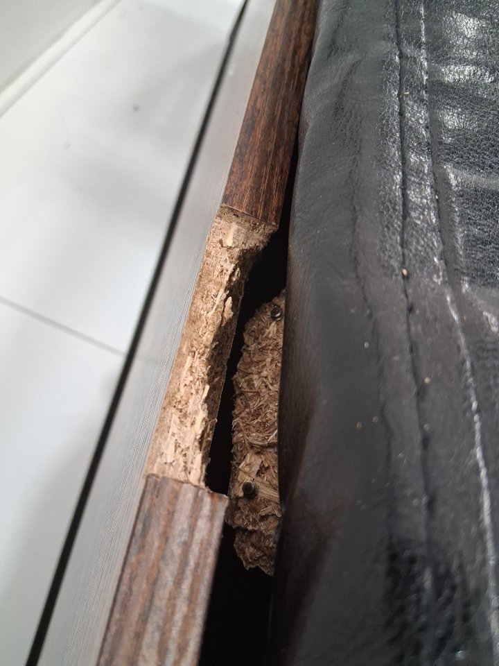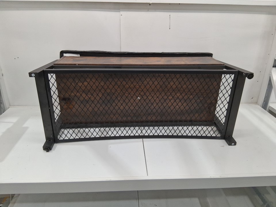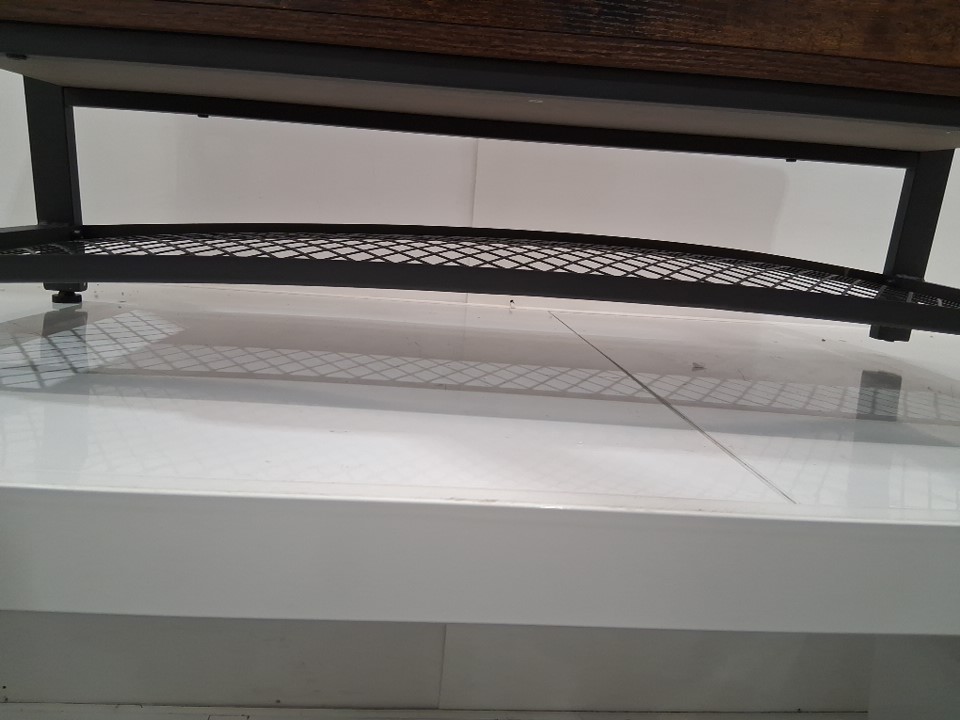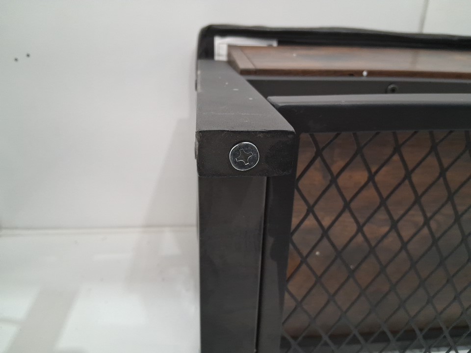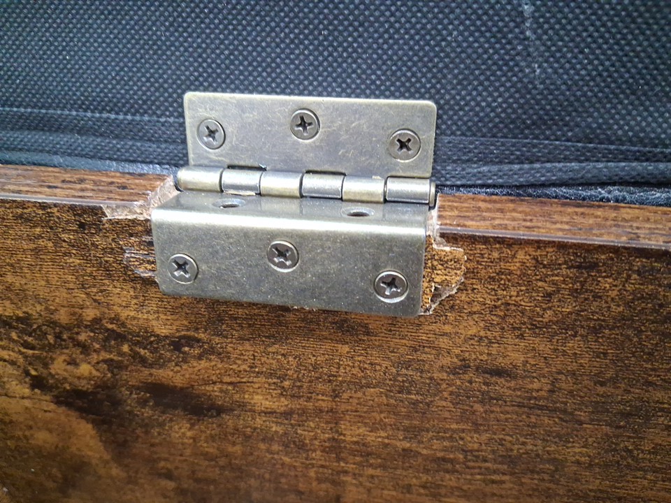 Due to shipping without packaging, one of the hinges of the seat has ripped out of place, the bottom shelf is slightly bent out of shape, and 2 feet are missing while another is cracked - see photos. Outside of these issues, does not show any obvious signs of being previously owned or used.