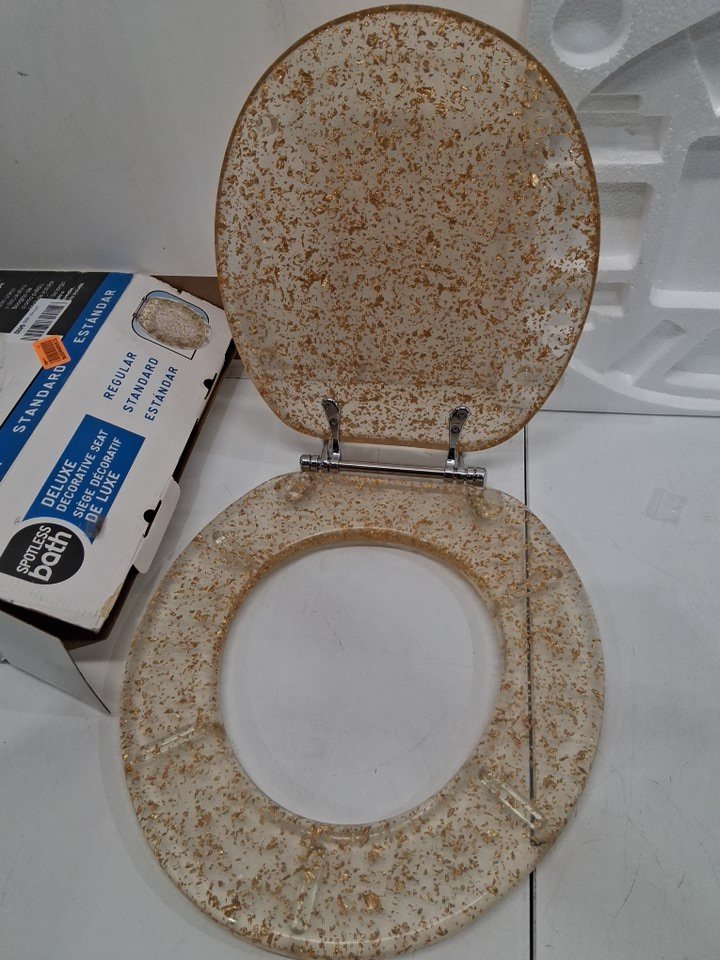 SPOTLESS BATH DELUXE DECORATIVE regular / standard RESIN TOILET SEAT - 16.5" - gold FOIL