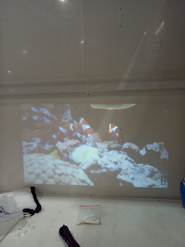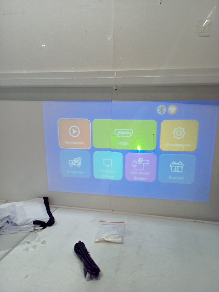 There are stains on the screen and ours is missing the remote. Tested for power. (SEE PHOTOS)