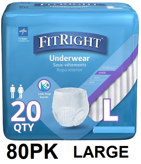 80pk unisex medline fitright underwear - large (40" - 56" waist) - (model: FIT23505A)