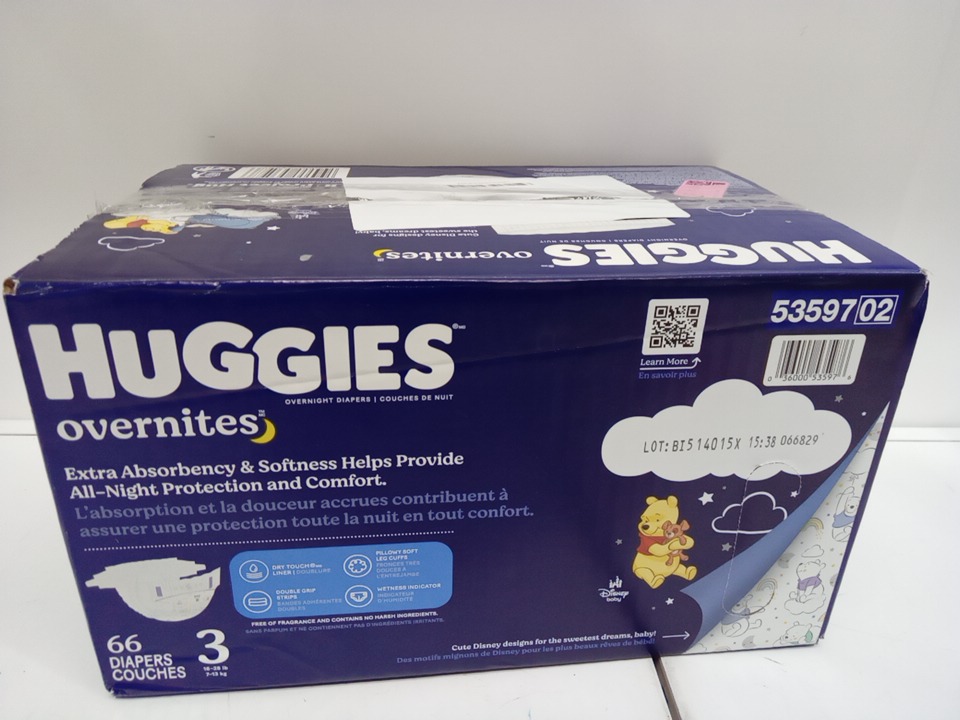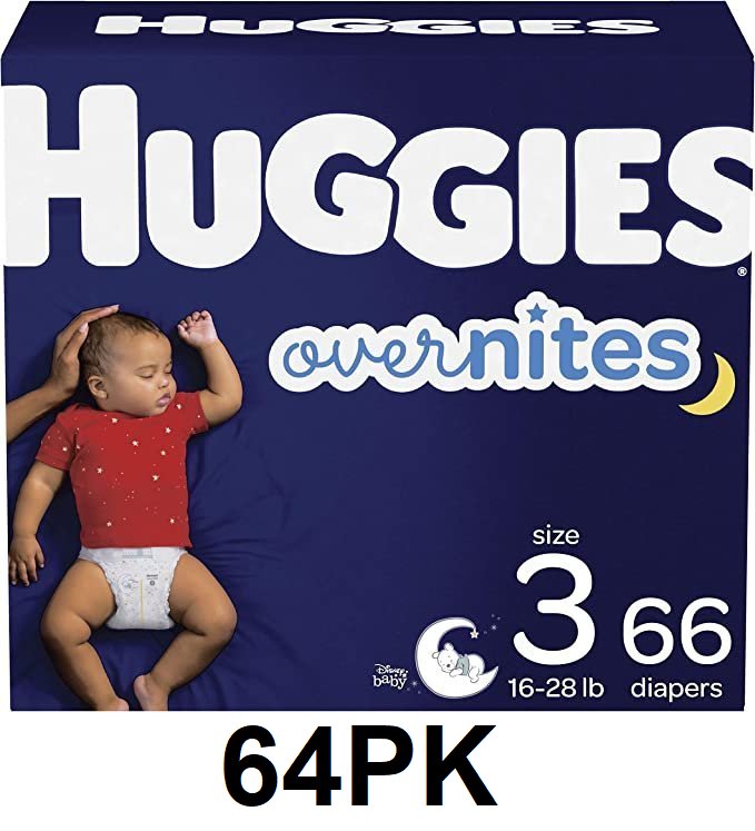 64PK HUGGIES DISNEY BABY OVERNITES disposable baby DIAPERS - Winnie the pooh - size 3 (16-28lbs)