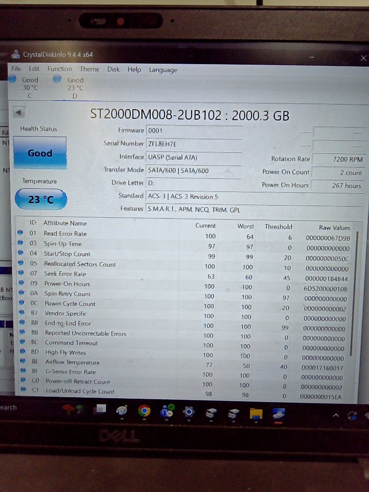 This drive has been powered on 2 times for a total of 267 hours. (SEE PHOTOS)