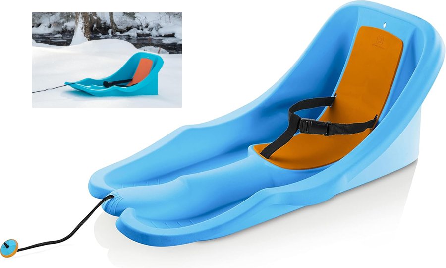 GIZMO RIDERS Baby, Toddler Sled, 3-Point Safety Harness - 29" x 15" x 13" - BLUE/ORANGE