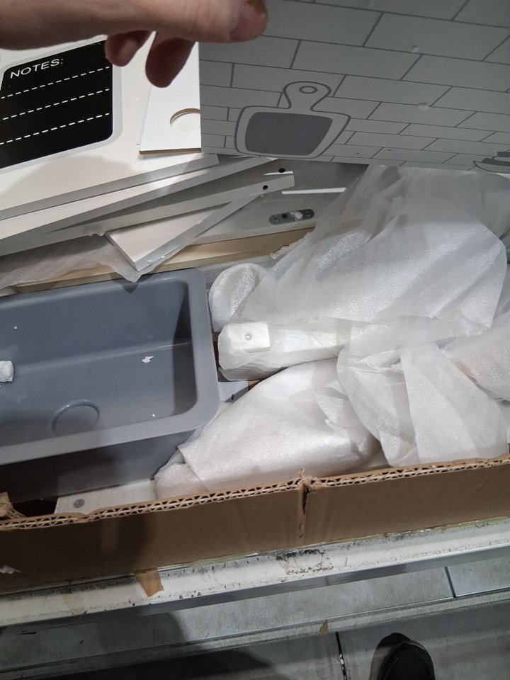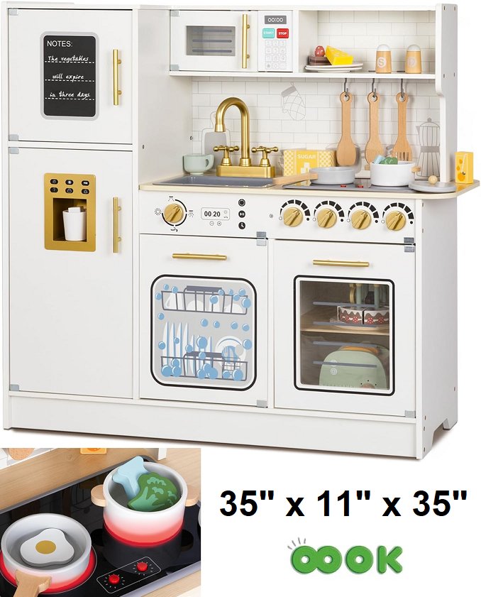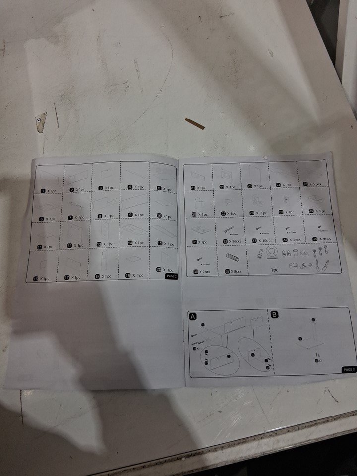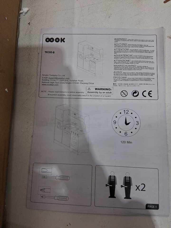 wood is lightly used/stained, may be missing hardware/pieces. can order replacement parts here: https://oookus.com/pages/contact