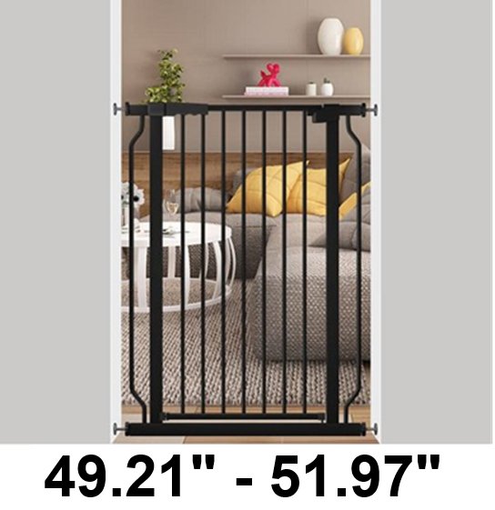 WAOWAO EXTRA TALL PRESSURE MOUNT WALK THROUGH, SWING AUTO CLOSE SAFETY BABY GATE - 40.55" TALL - EXTENDS 49.21"-51.97" - BLACK METAL - (MODEL: W282)
