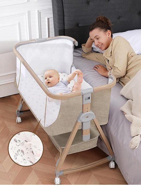 Baby Bassinet, Basinet Bedside Sleeper with Waterproof Bassinet SHEETS - KHAKI
