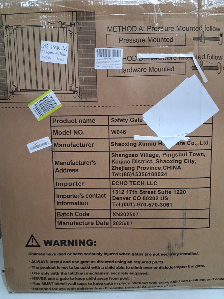 ALLAIBB EXTRA WIDE METAL PRESSURE BABY/PET GATE FOR ENTRANCEWAYS 71.65"-76.38" - BLACK (MODEL:W046)