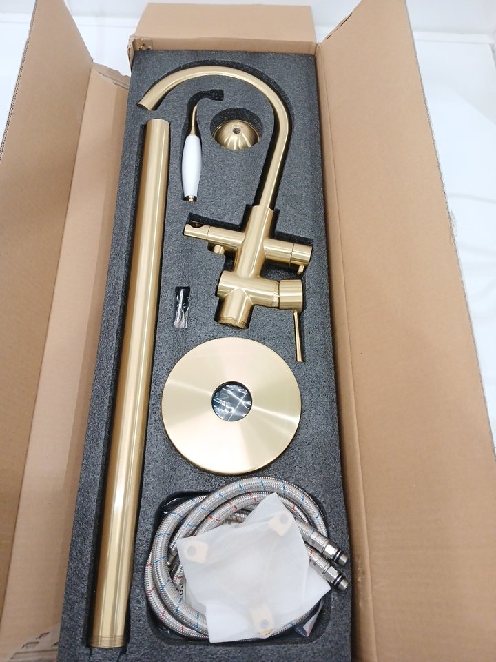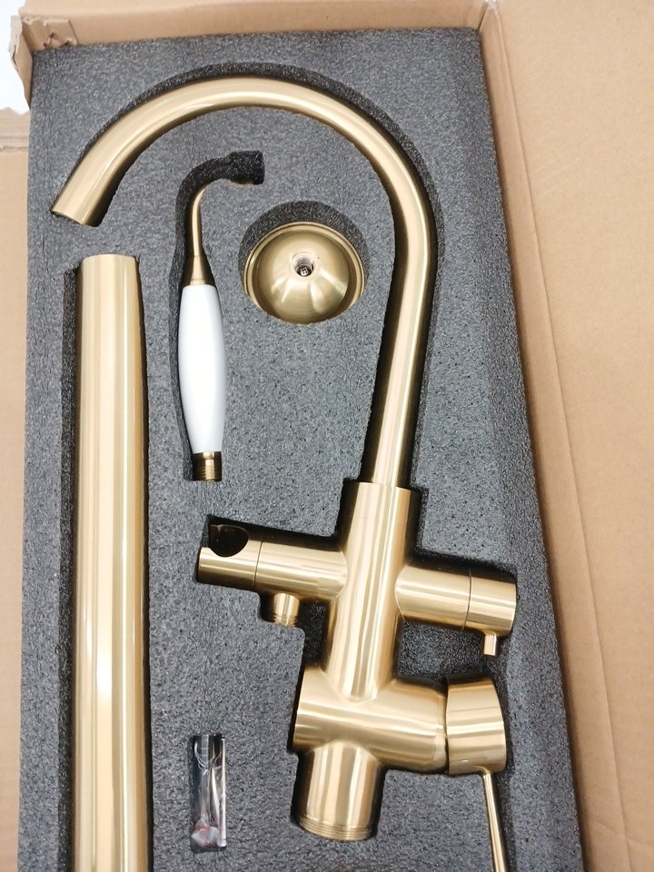 Freestanding Bathtub Faucet - 44.6" x 9.3" - Brushed Gold
