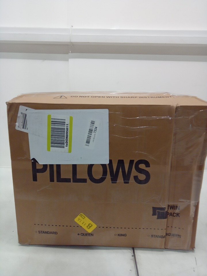 2PK Soft and Supportive Bed Pillows with Embroidery - QUEEN - White/Brown Trim