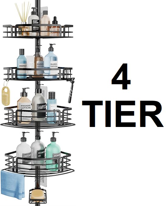 SWTYMIKI Rustproof Tension Shower Caddy Corner with Towel Bar & Soap Holder, Adjustable Shower Shelves Shower Organizer - 27" -108" - black (model: zwj1490)