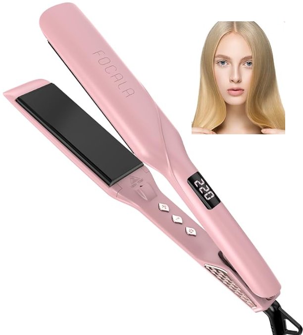 focala iron wide hair smoother for thick, curly and long hair - for all hair types - pink - (model qf-z400)