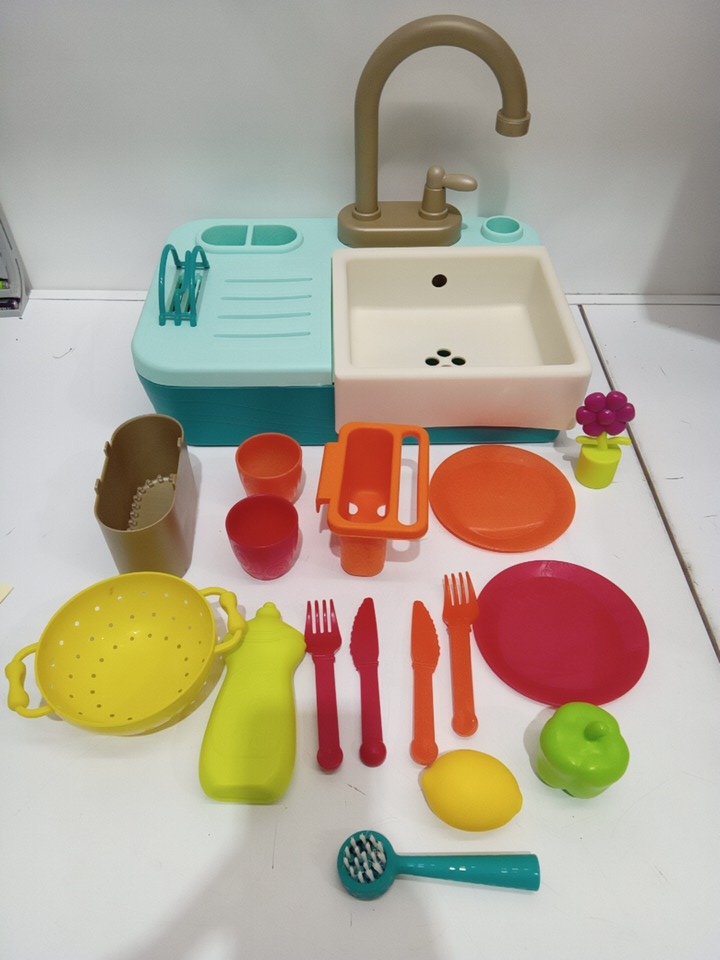18PC B TOYS Splash-n-Scrub Sink Sink Play Set - Teal/Multicolour (Model:BX2070)