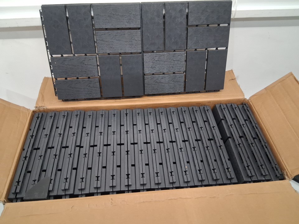 38pk Plastic Interlocking Deck Tiles - 12" x 12" - black