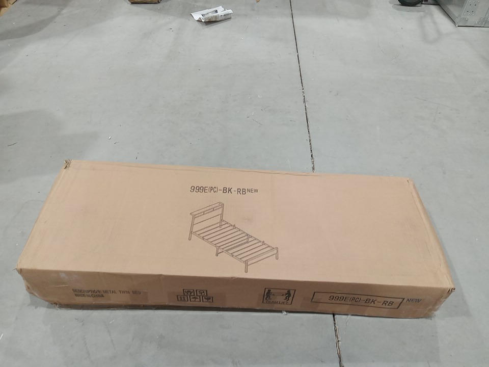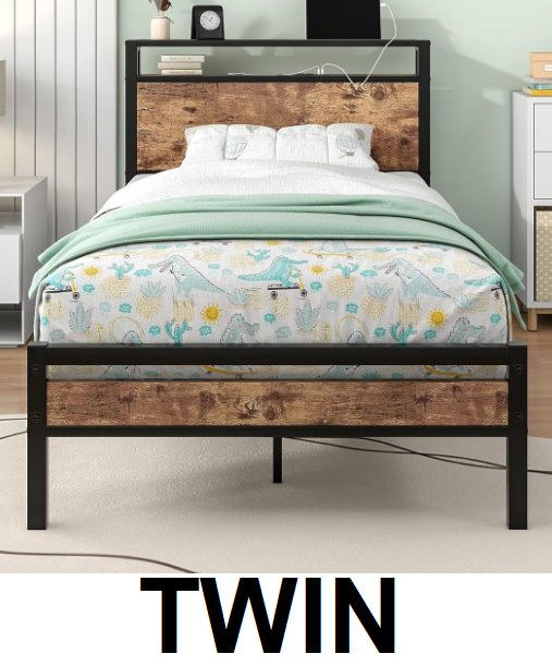 BOFENG Bed Frame with Storage Headboard/USB Charging Station - twin - rustic brown (model:999E-BK-RB)