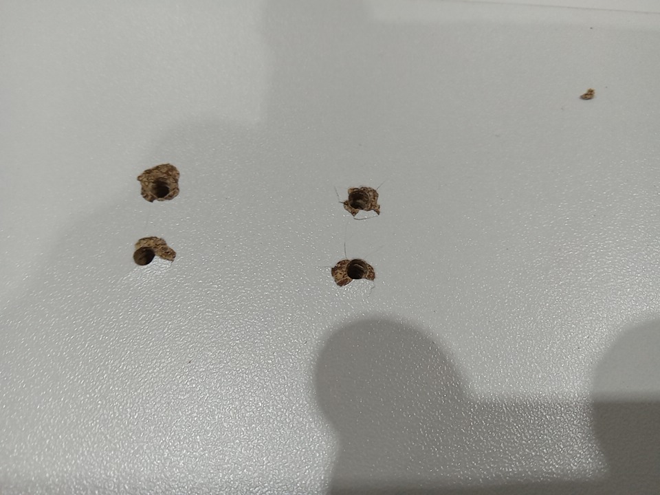 Their are some fraying marks on the assembly points indicating this item may have been previously assembled. all vital parts for assembly are present. see photos below.