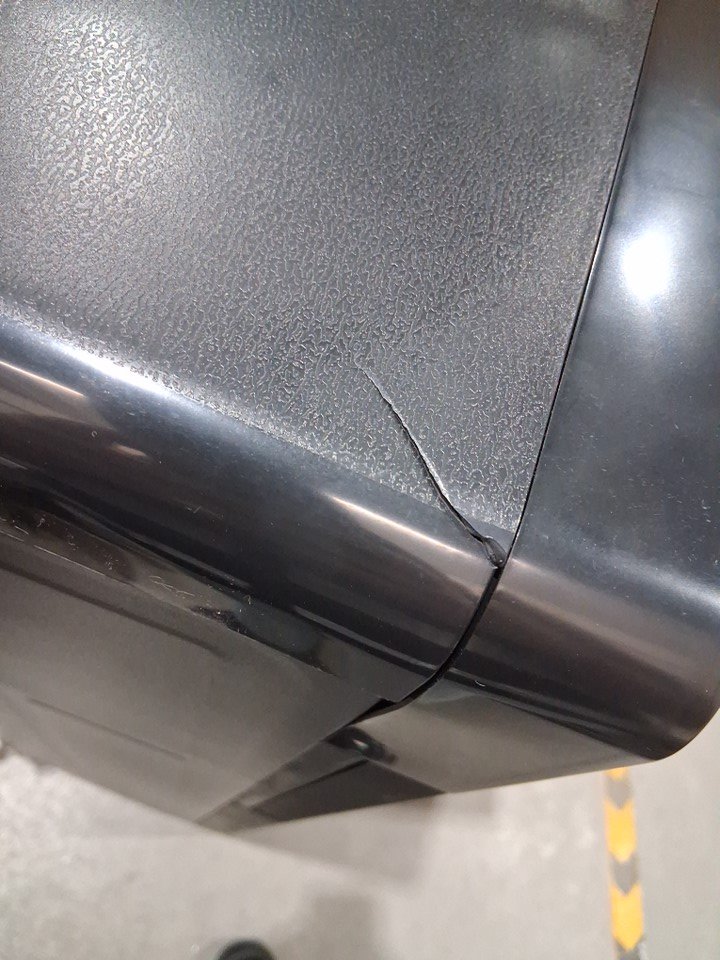 there is a small crack in the plastic on the top. tested for power only.