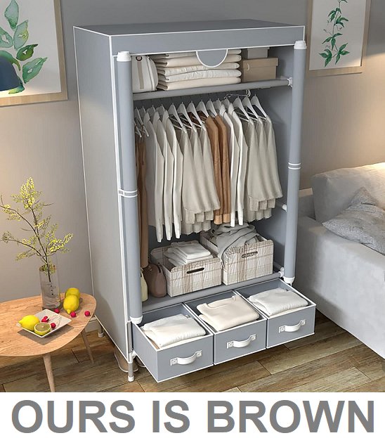 ASSICA portable clothes closet with rolling door and hanging rack - 35.4" x 17.7" x 67" - brown